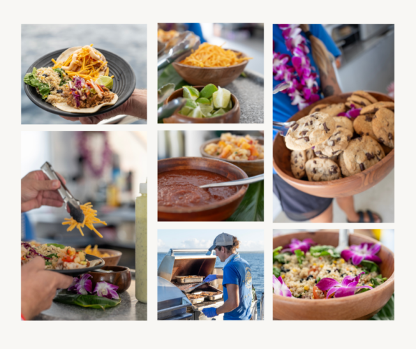 Your private afternoon Maui snorkel charter, a 3-hour tour, begins with a 12:45 pm check-in at Ma‘alaea Harbor and departs at 1:00 pm for an afternoon of sun, sea, and celebration. Dive into Maui’s crystal-clear waters, explore vibrant coral reefs, or simply relax on deck with a refreshing drink in hand. Enjoy a freshly prepared taco bar featuring guava pulled pork, grilled fish, and savory Beyond Meat tacos — plus kid favorites, hot dogs, Maui Chips, and warm chocolate chip cookies for dessert.